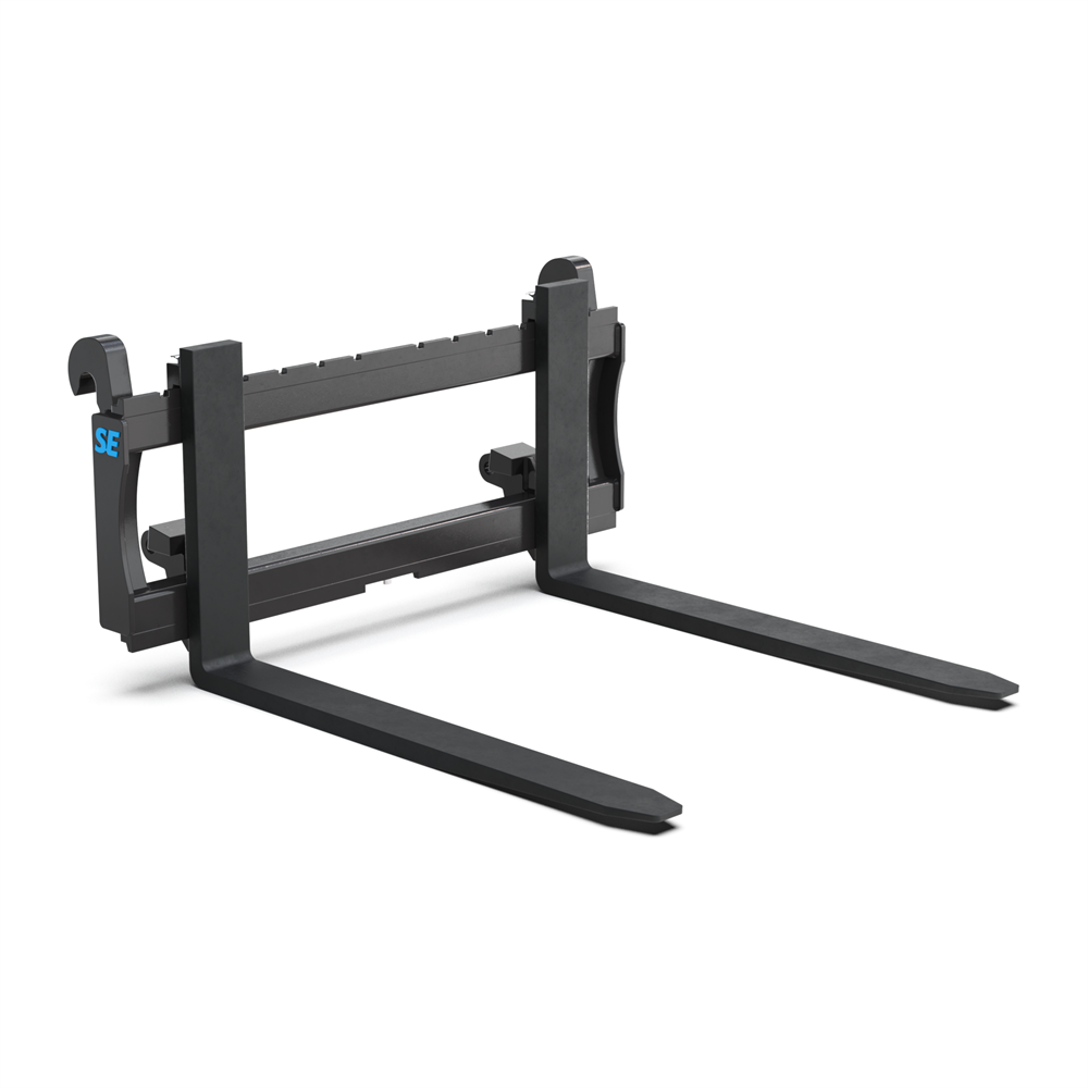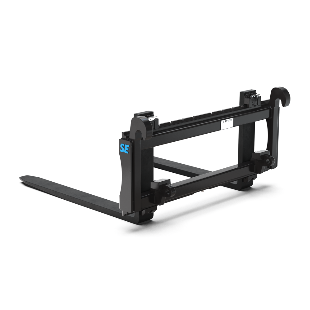 SE Equipment stocks mechanical Pallet Fork Frames designed with a focus on high safety, quality, and user-friendliness. This Euro Pallet Fork Frame has a lifting capacity of 1500 kg and forks measuring 100 × 32 × 1000 mm. With a frame width of 1100 mm, it is suitable for versatile tasks within agriculture, contracting, and logistics.