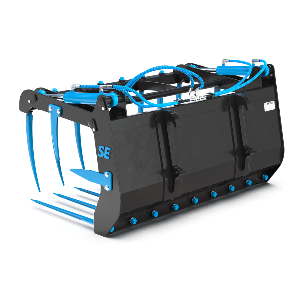 The Silage Grab is especially suitable for handling silage, brushwood, manure, and branches. It is ideal for farms, agricultural use, brush clearing, and other heavy lifting tasks requiring a secure and powerful grip.