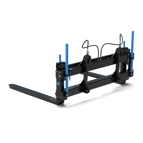 This hydraulic Pallet Fork Frame from SE Equipment is a powerful tool for those working with heavy lifting in demanding environments. Featuring a Big BM mounting, a capacity of 9.9 tons, and standard hydraulic fork positioning and side shift, it offers strength, flexibility, and high safety.